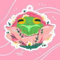 Part of this season’s Frog Spring collection, this is a 2.5" one-sided reclaimed wood charm, of a white’s tree frog living in a rose cup. Aren’t they adorable?